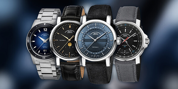 Entdecken Sie die neuen Modelle: Teutonia II Ringdatum, Teutonia IV Mondphase im edlen Bicolor Look in Anthrazit und Gold, die 29er BIG GMT sowie die Sportivo Großdatum.